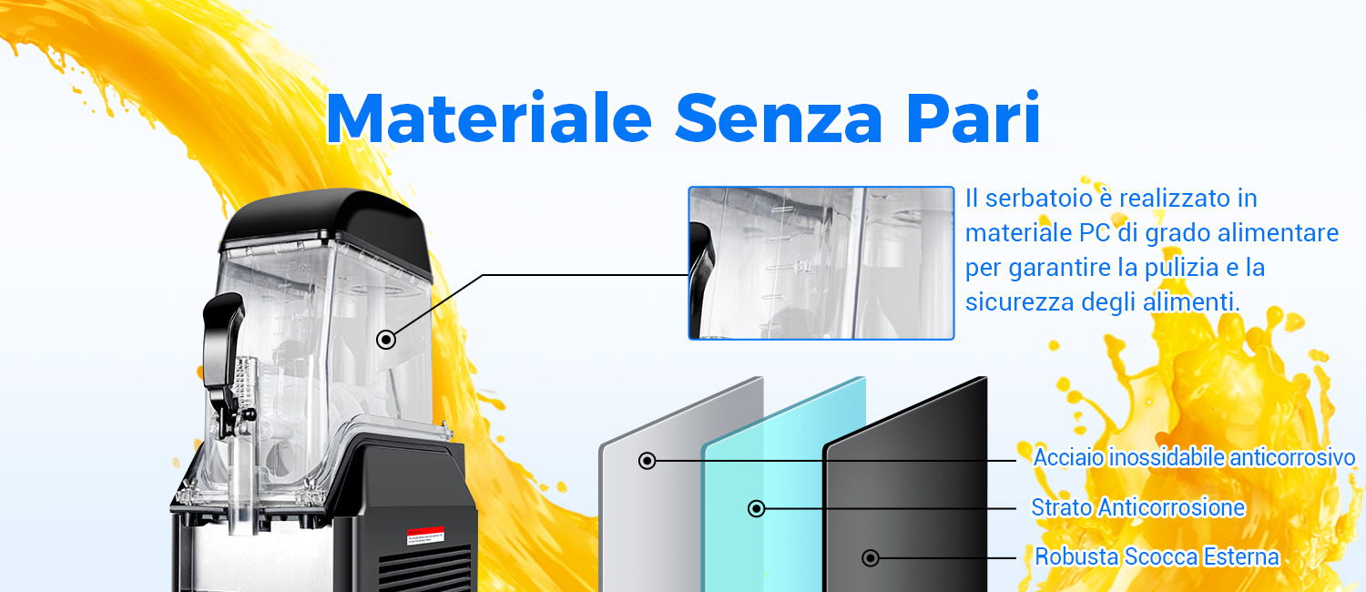 2. Qualità Avanzata: La costruzione durevole in acciaio inossidabile e ABS, combinata con serbatoi in PC di qualità alimentare e coperchi a doppio strato in PC e ABS, garantisce durabilità a lungo termine e semplifica la pulizia e la manutenzione. Gli agitatore duali migliorati ruotano di 360 gradi orizzontalmente per ridurre i sedimenti, mentre l'agitatore verticale più ampio accelera il trasferimento delle bevande per una miscelazione ottimale.