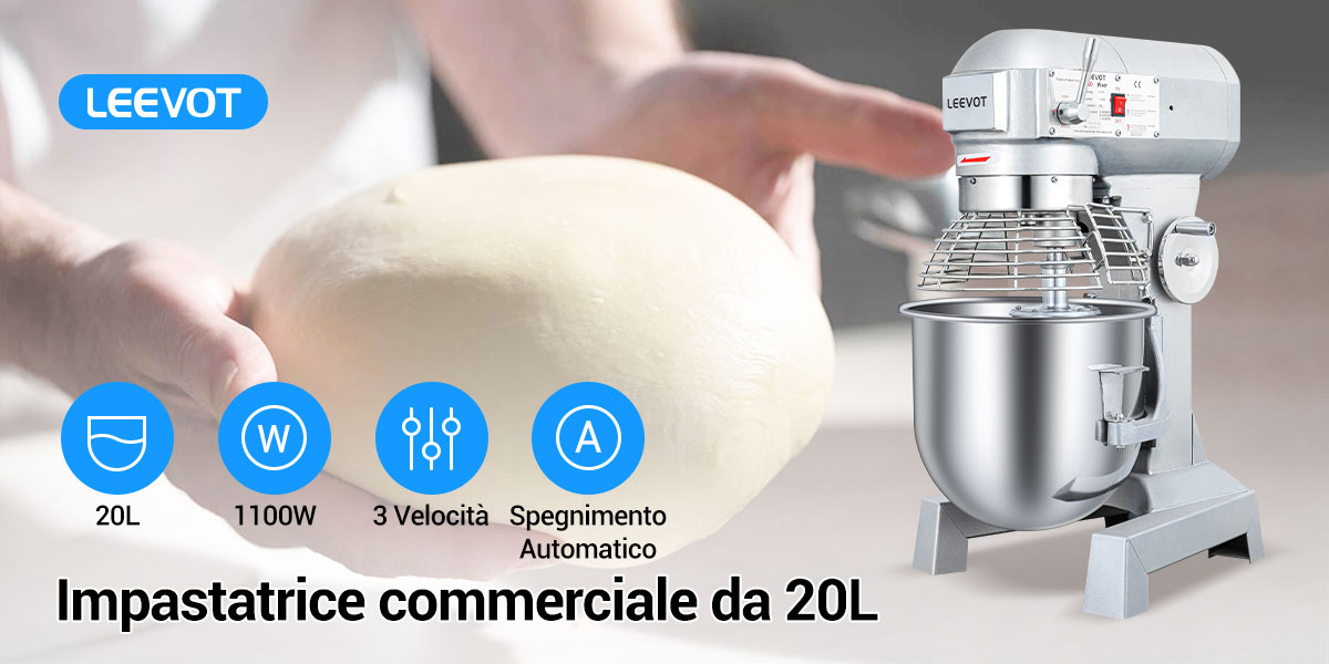 Leevot mixer professionale 20 L. - Funzione di Temporizzazione, Mixer Elettrico da Banco Robusto con Protezione e Accessori Standard